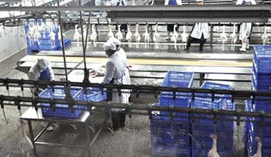 我公司年收購、屠宰、加工肉食雞2500萬只,年產產品6萬余噸,銷售收入近6億元,實現利稅2000余萬元。帶動3500戶農民養雞致富,安置農村剩余勞動力和下崗職工600余人就業,間接帶動4000人發展肉食雞產業,年可創社會效益近億。